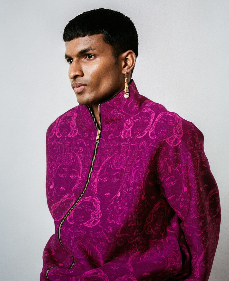 A bold statement in modal satin, this high-neck bomber jacket features a boxy fit with a metal zipper closure. Detailed with contrast piping along hems and seams and finished with an all-over print, it’s the perfect blend of edge and effortless style.