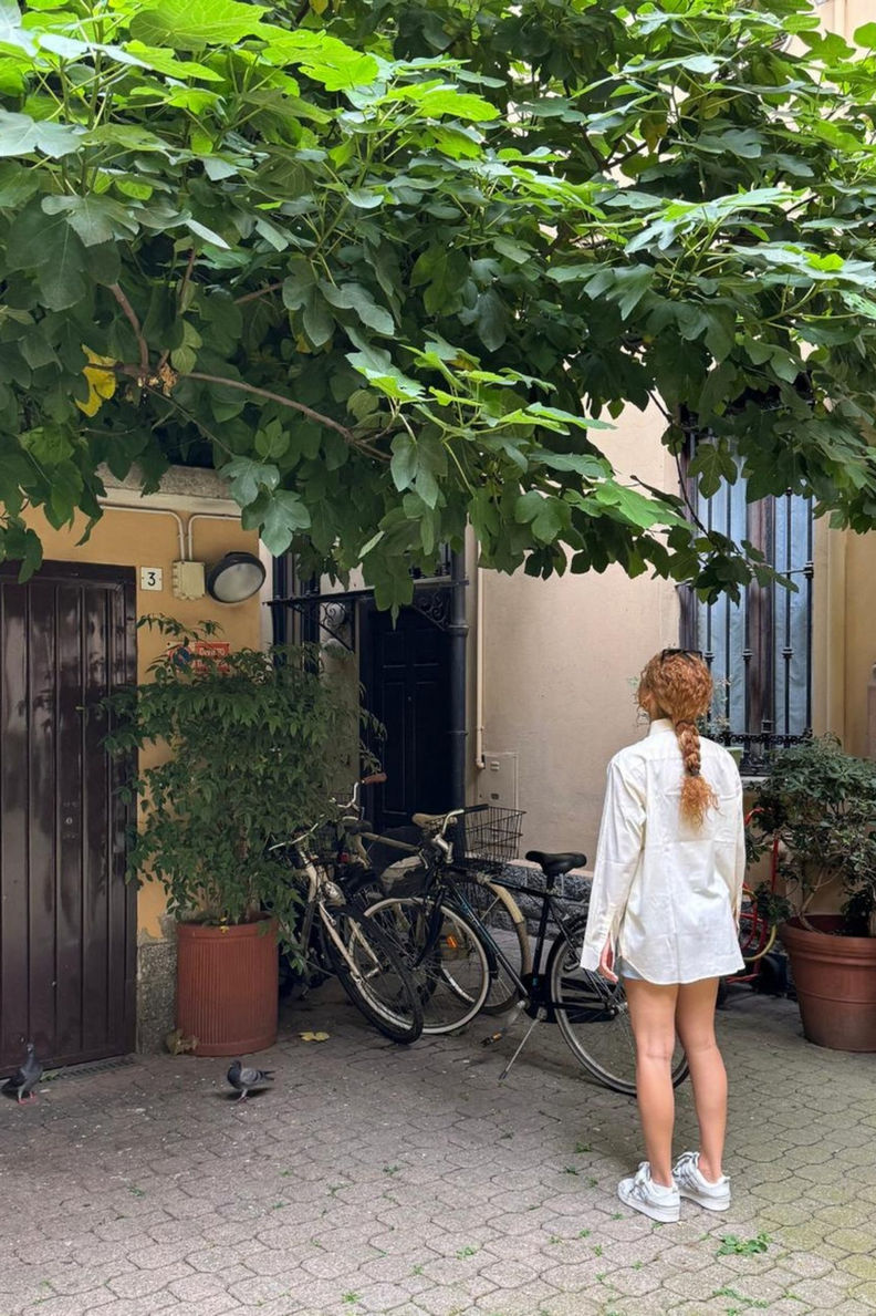 Creamy silk shirt with embroidered illustrations of a WG muse. A bit of artistic charm and elegance to unwind on a relaxing vacation.
