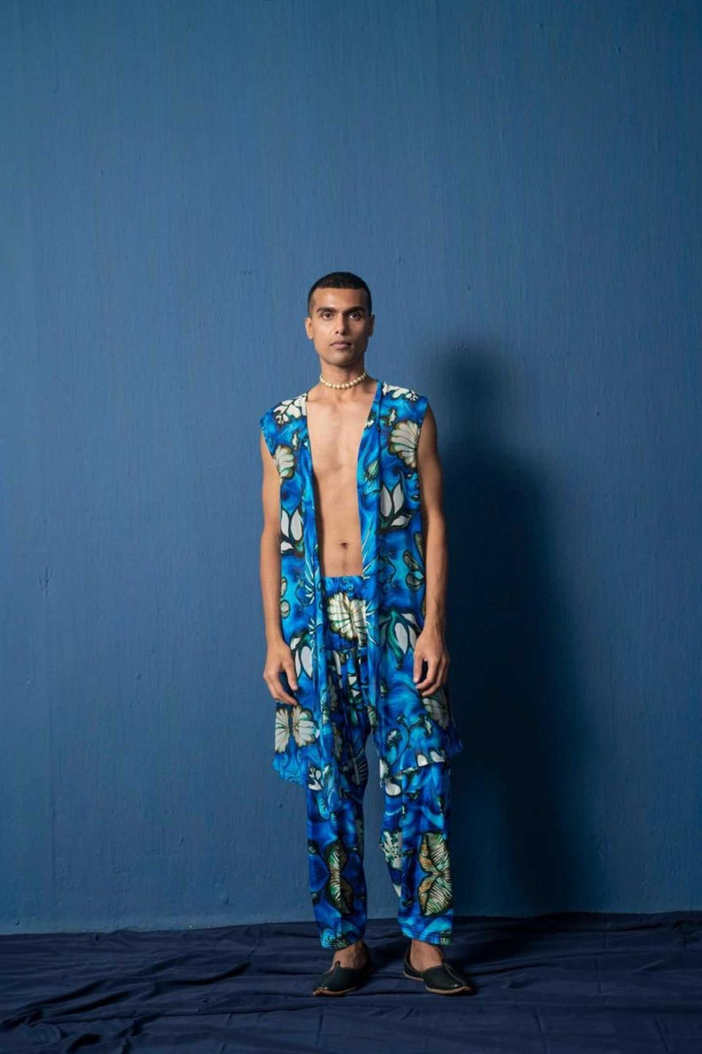 Each garment is a unique expression of art. Variations in mural placement are intentional to minimize fabric waste and preserve sustainability. Additionally, slight differences in color tones may occur, as each fabric batch is individually crafted and cannot be identically reproduced.